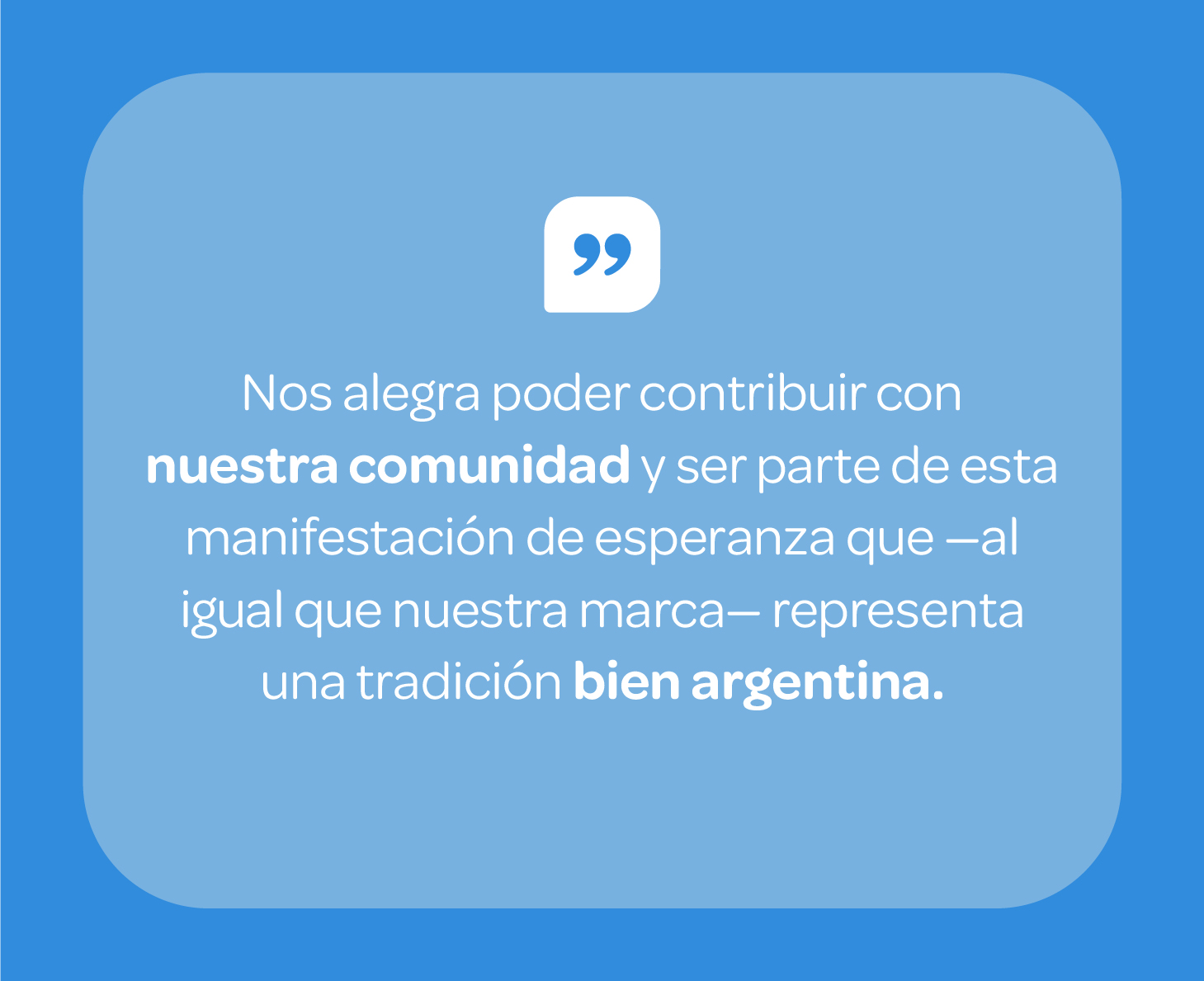 Nos alegra poder contribuir con nuestra comunidad y ser parte de esta manifestación de esperanza que cada año reúne a tantos fieles y familias, que —al igual que nuestra marca— representan una tradición bien argentina.